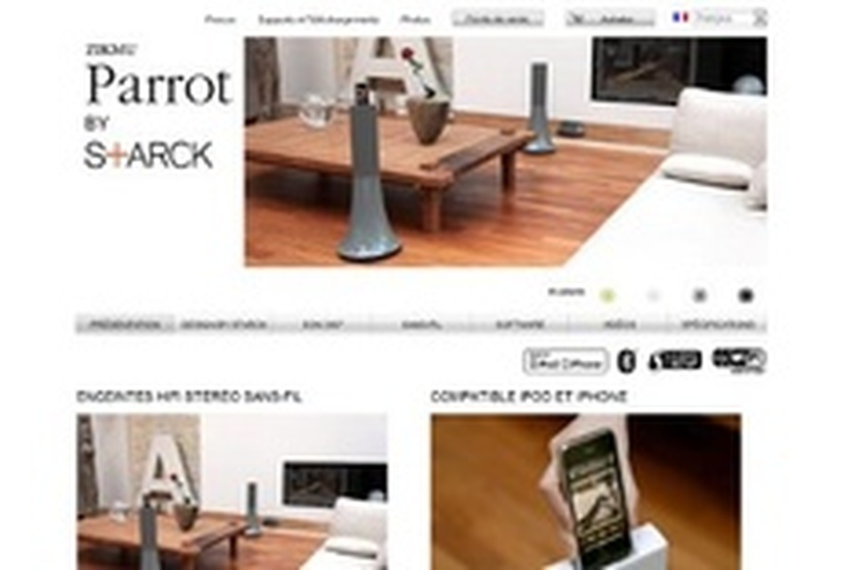Les enceintes sans fil Zikmu pour iPhone et iPod sont l'aboutissement d'une étroite collaboration entre le célèbre designer français Philippe Starck et la fameuse marque Parrot, leader dans le domaine des technologies Bluetooth et Wi-Fi. Emencia a accompagné le service marketing de Parrot dans la refonte du site Zikmu pour le rendre plus dynamique et agréable, notamment en implémentant une bannière en Ajax mettant le produit en valeur et permettant au visiteur de le voir en situation.