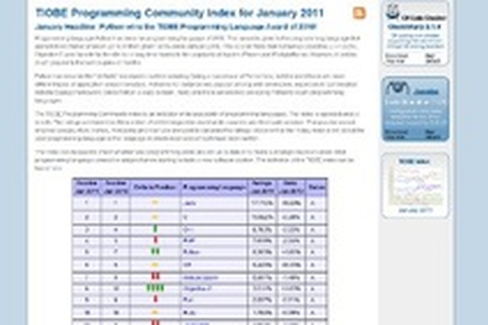 Le langage de programmation Python a gagné le prix de "Langage de Programmantion de l'année 2010" décerné par la TIOBE Programming Community. Ce prix récompense le langage ayant gagné le plus de part de marché l'année passée. Découvrez l'article ici : http://www.tiobe.com/index.php/content/paperinfo/tpci/index.html